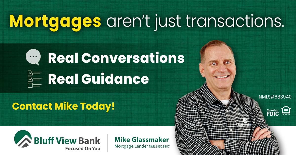 Mike GlassmakerNMLS# 523887 608-582-3650 mikeg@bluffviewbank.com |